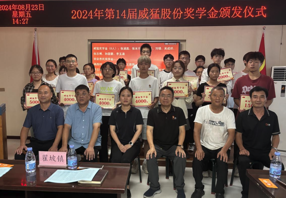 8月23日下午,威猛股份隆重舉行2024年第 14屆獎學金頒發(fā)儀式。參加儀式的主要領(lǐng)導有翟坡鎮(zhèn)黨委書記張寒瑞,寺王村書記王澤平,南東村書記徐興濤,南西村副書記王明保,威猛股份總經(jīng)理...